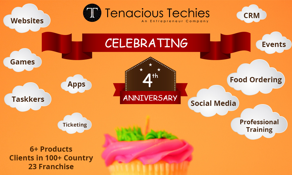 Tenacious Techies Celebrating 4th Anniversary. From the previous year, it has grown tremendously with Franchisee in 23 locations across the globe. The company will be setting new goals and targets to achieve this year especially with the new app Taskkers which the company firmly believes in. Â