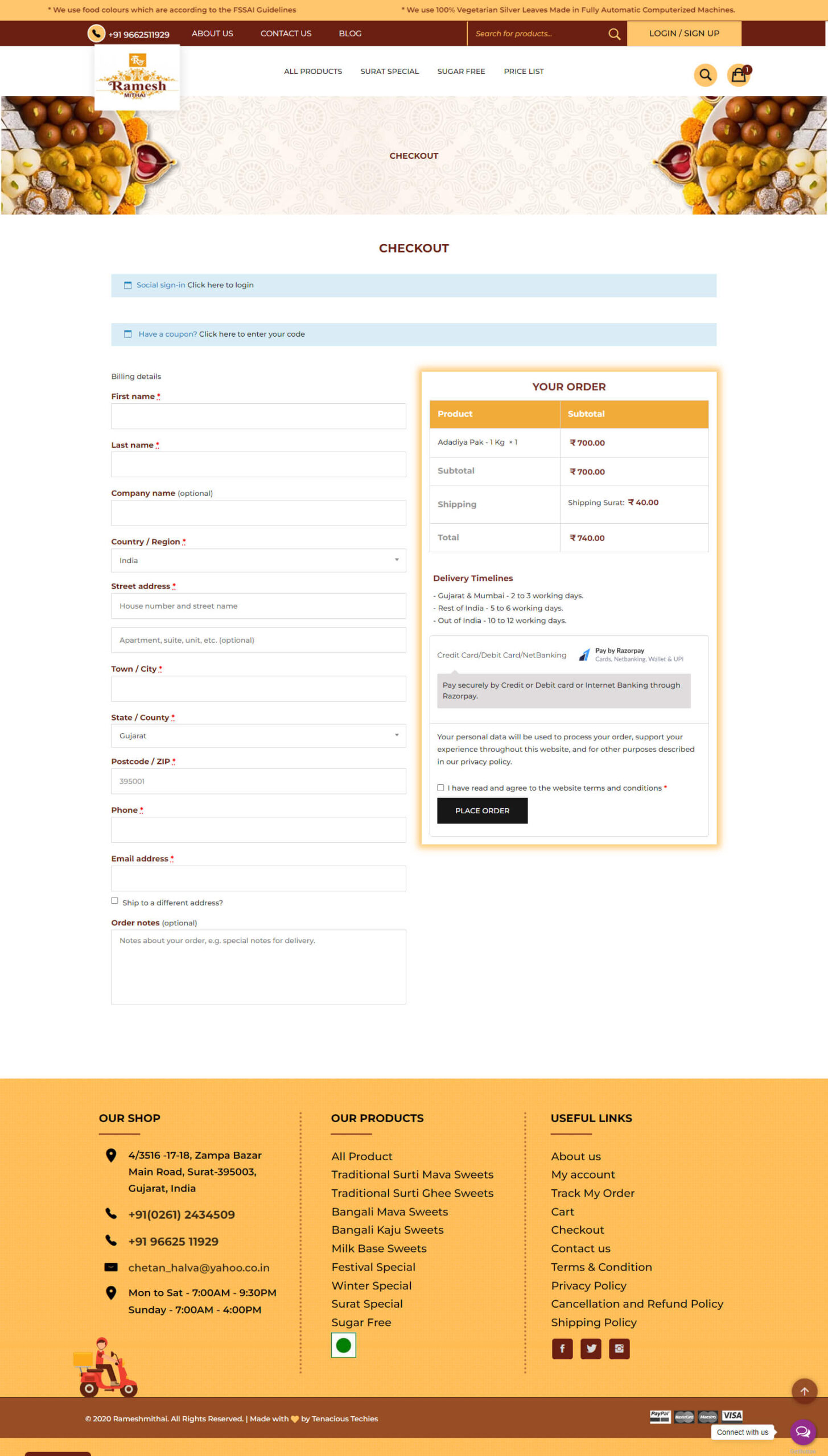 As of now, they are serving a wide variety of Indian sweets through their shop which is located in Zampa Bazar, Surat. To upscale their Sales we developed one of the finest E-Commerce website for them.